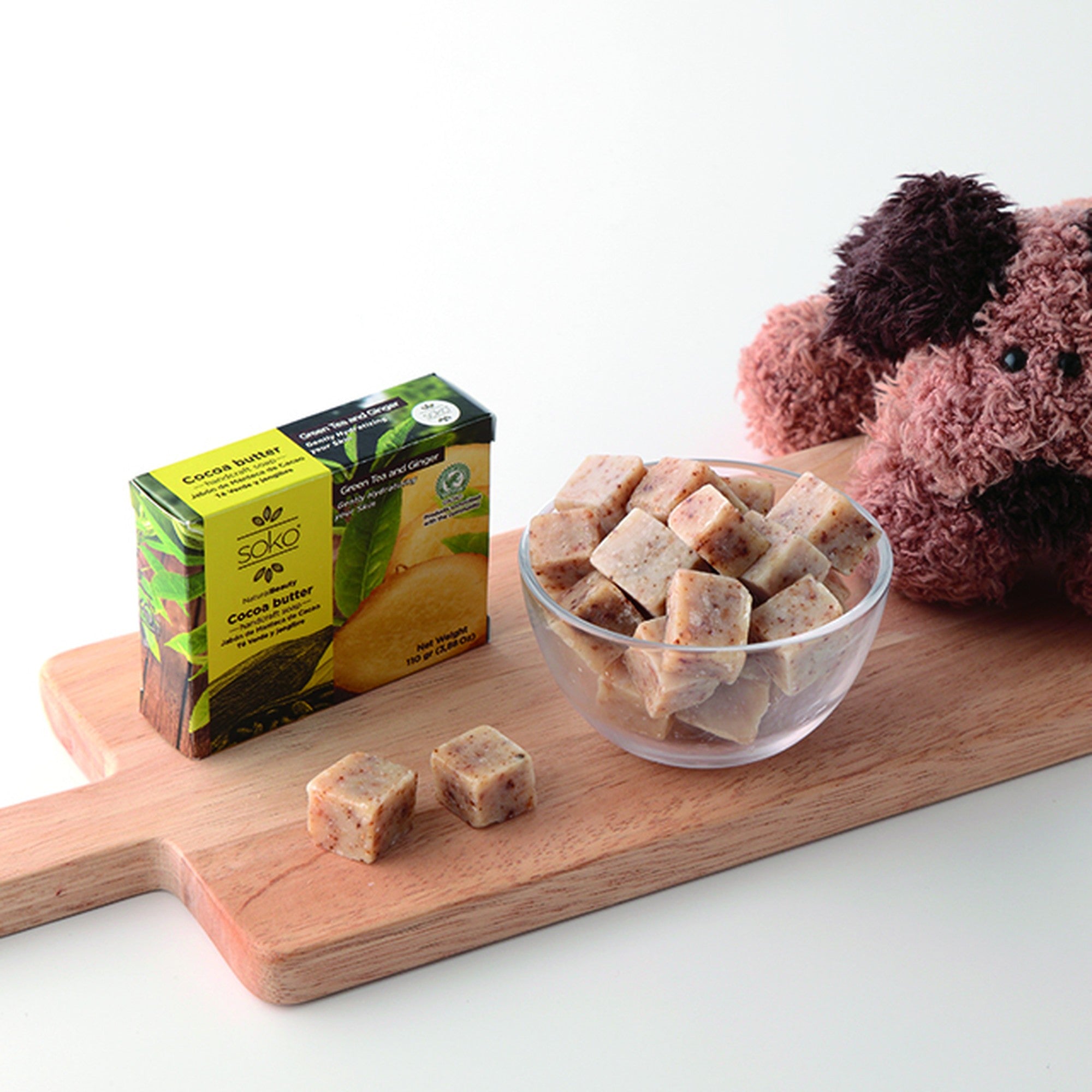・ベースとなるカカオバターにジンジャーとグリーンティーを配合。