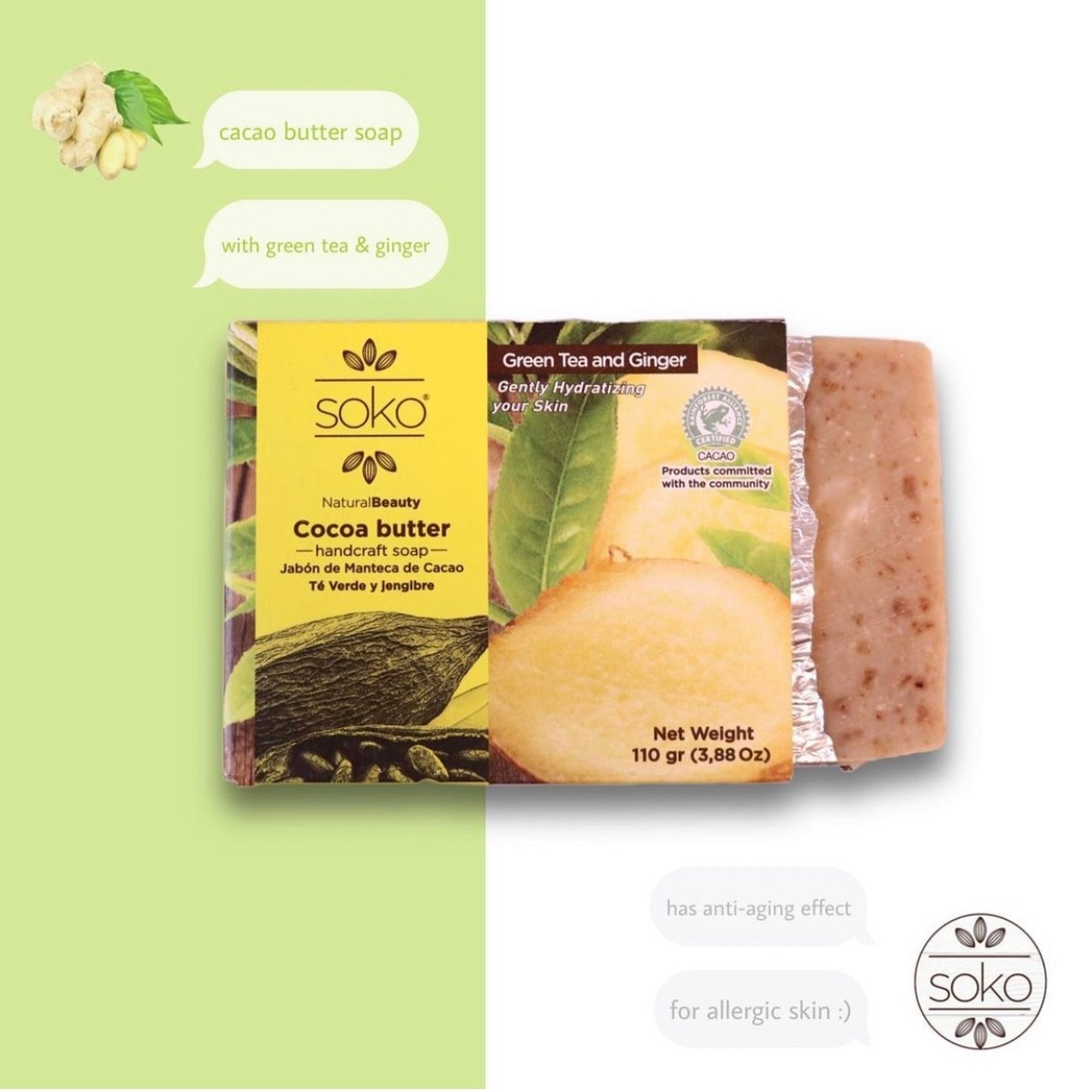■soko カカオバターナチュラル石けん(ジンジャー&グリーンティー)